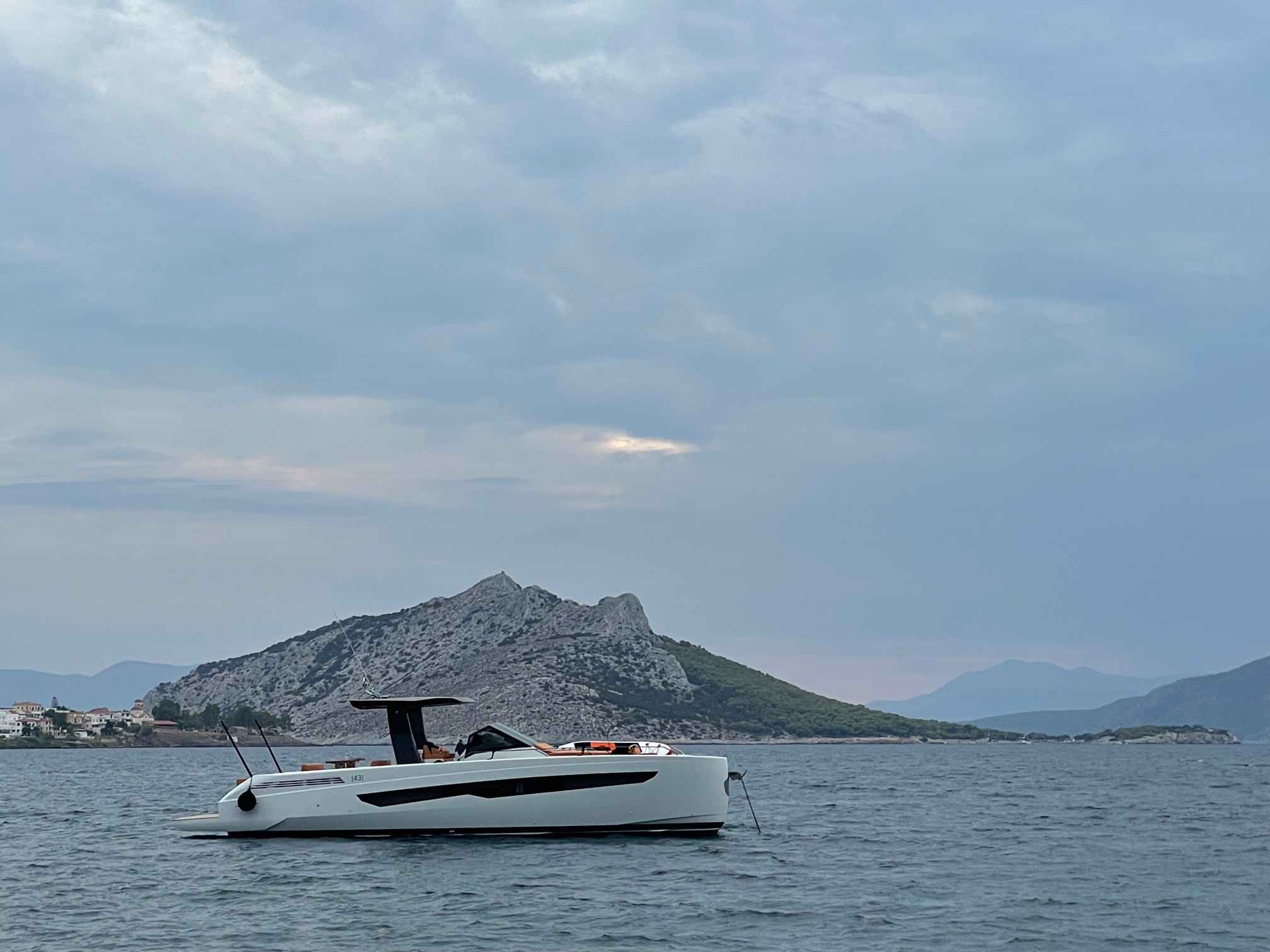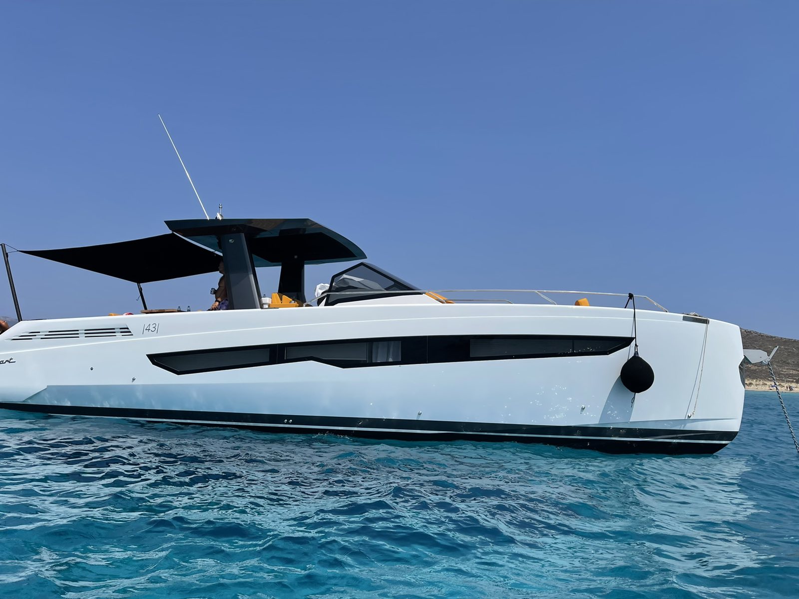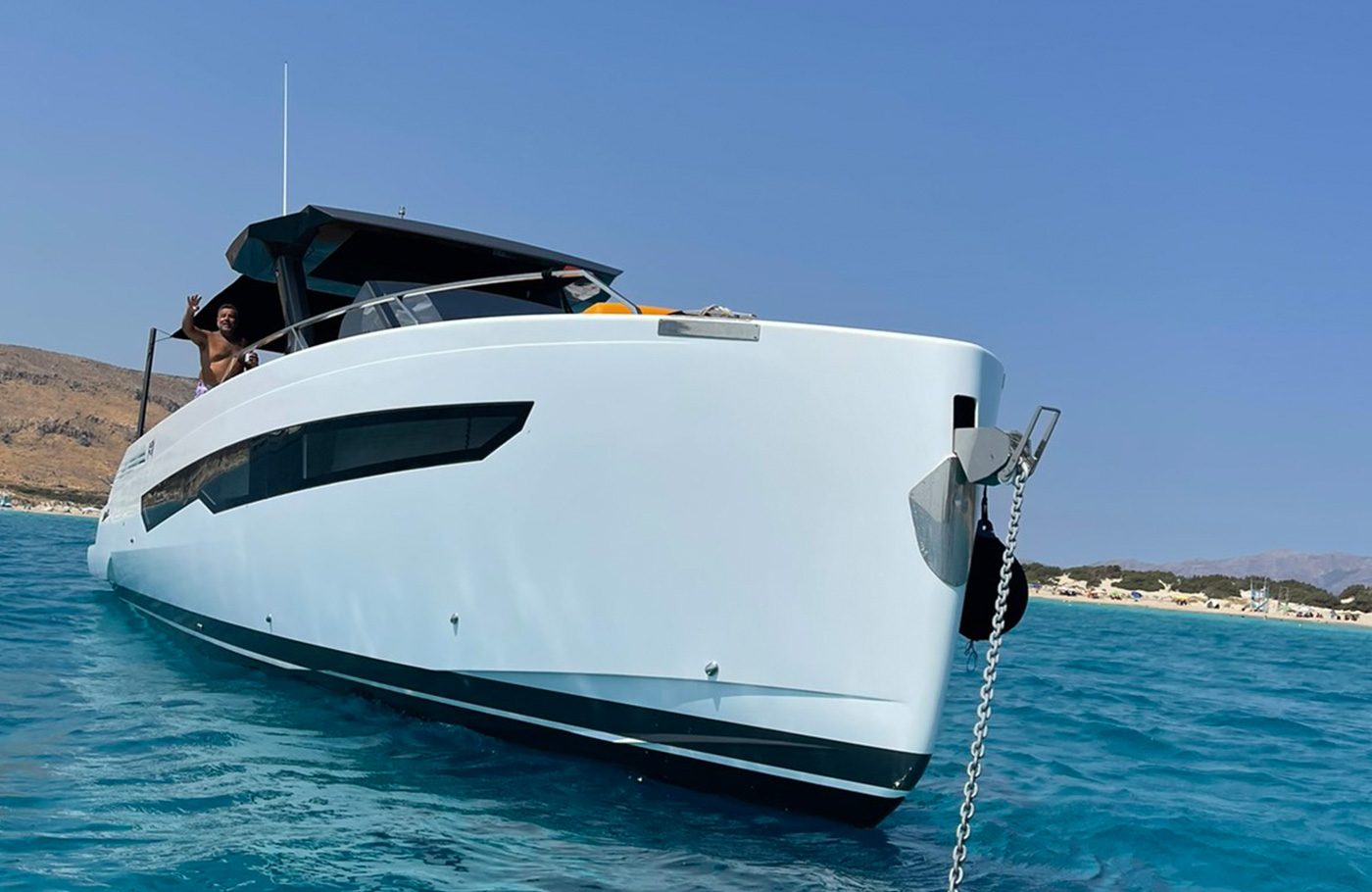 Fiart 43 - Seawalker has been conceived for stable and powerful navigation through the most up-to-date CFD systems. The water lines and hull are optimized to interact with Volvo IPS propulsion systems and the low center of gravity makes the boat stable both at sea and at anchor. In reality, driving it will be a unique experience.