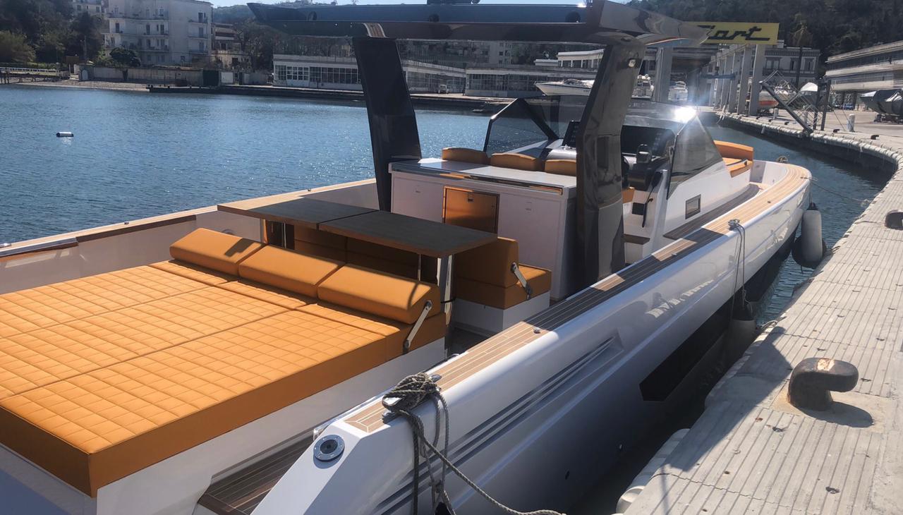 The deck provides in the cockpit area a large sundeck of 230cm x 220cm with a reclining back and a storage compartment that allows you to stow equipment and games (seabob, sup, etc ...) and even a small tender. The sundeck is being completed with a bench in the center of the boat with a reclining backrest and with two tables for the formation of a dining area that can comfortably accommodate 8/10 people seated.